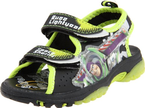 Disney BZS600 Lighted Slingback Sandal (Toddler/Little Kid),Black/Green,7 M US Toddler Let the space adventure begin in these fantastic Disney Toy Story young boys Buzz Lightyear "Space Sheriff" sandals, perfect for any Toy Story fan. Sandals feature a lighted image of Buzz Lightyear. Disney Toy Story sandals shoes also features lights that light up when you walk for added detail. Read more